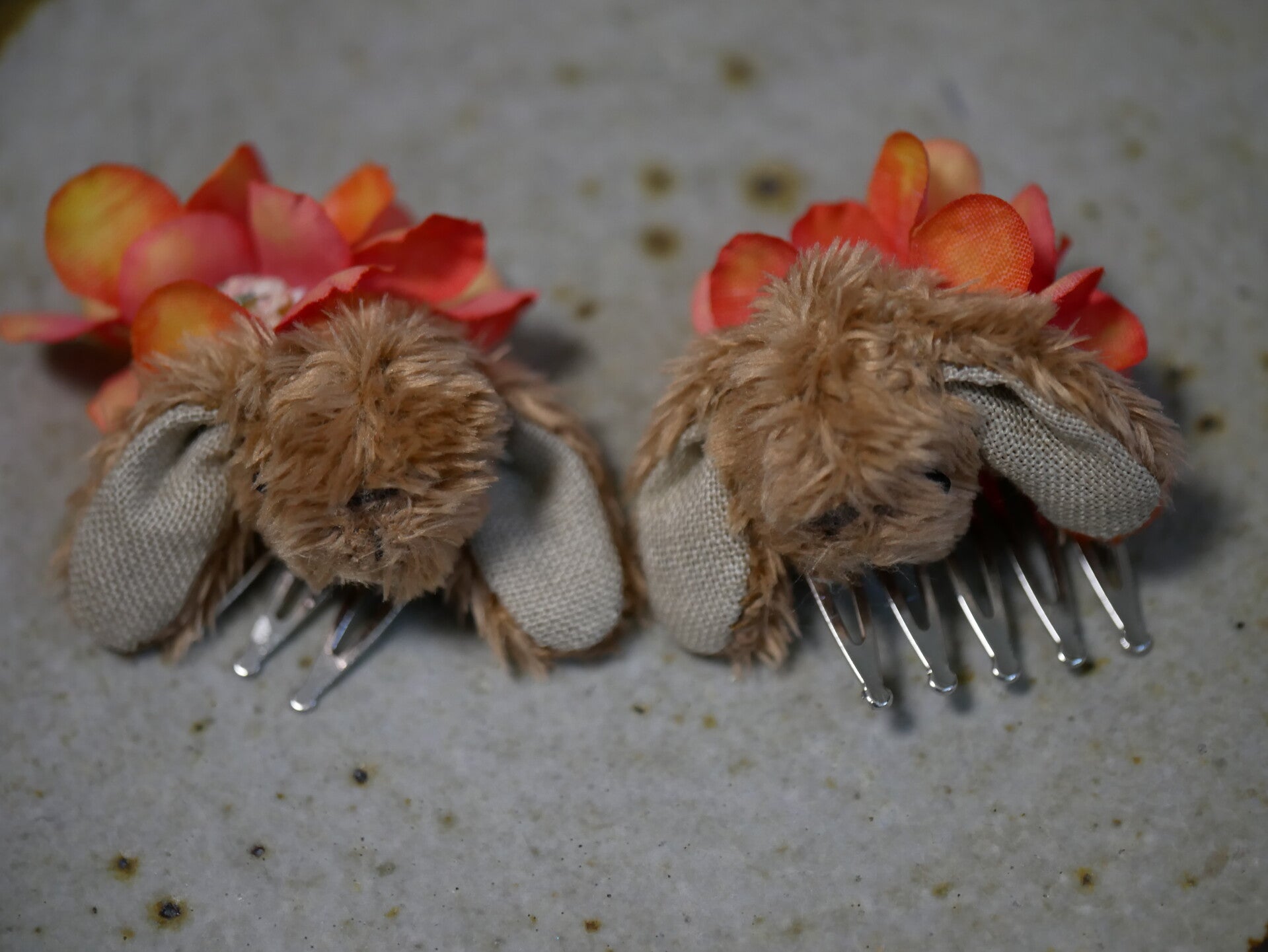 Handmade cute rabbit hairpins for dolls./ Orange (Right)
