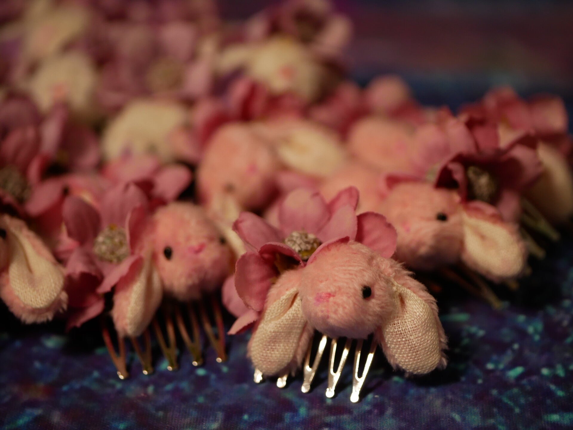 Handmade cute rabbit hairpins for dolls./ Pink rabbit (Right)