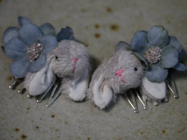 Handmade cute rabbit hairpins for dolls./ Gray (Right)