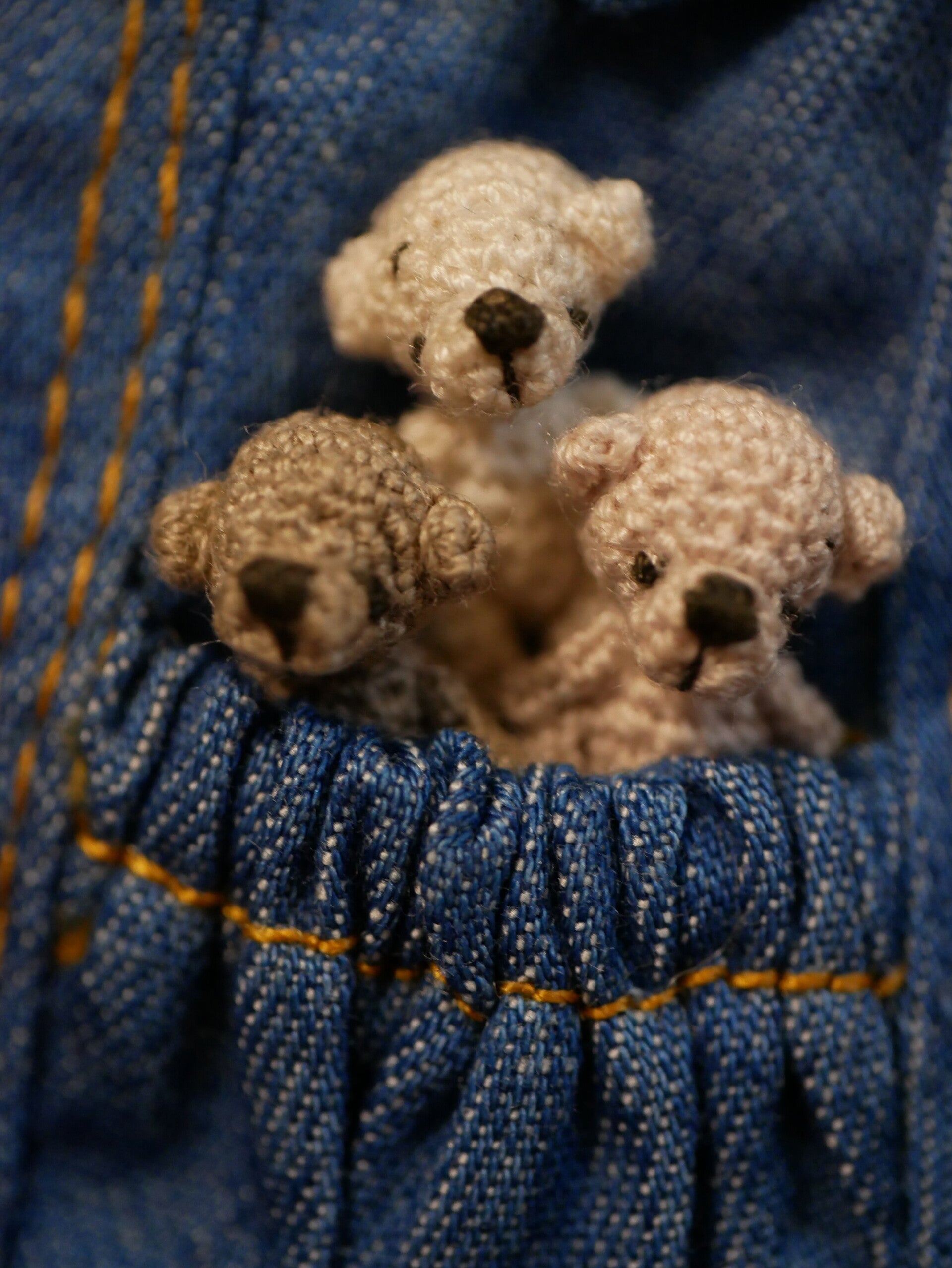 Crocheted mini Bear 1,50 cm with sewing thread / 01. Light beige
