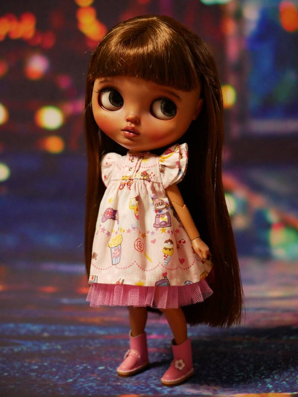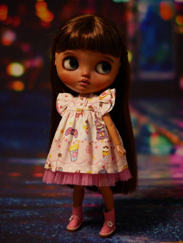 Beautifully ruffle sleeves dress with tulle petticoat in one piece for Blythe dolls.