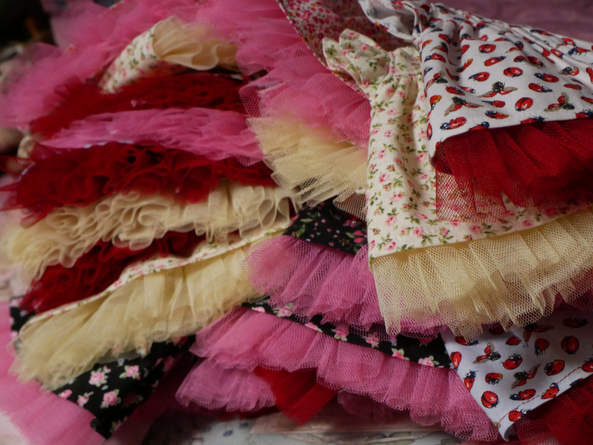 Floral print ruffle sleeves dress with tulle petticoat in one piece for Blythe or Emily dolls.