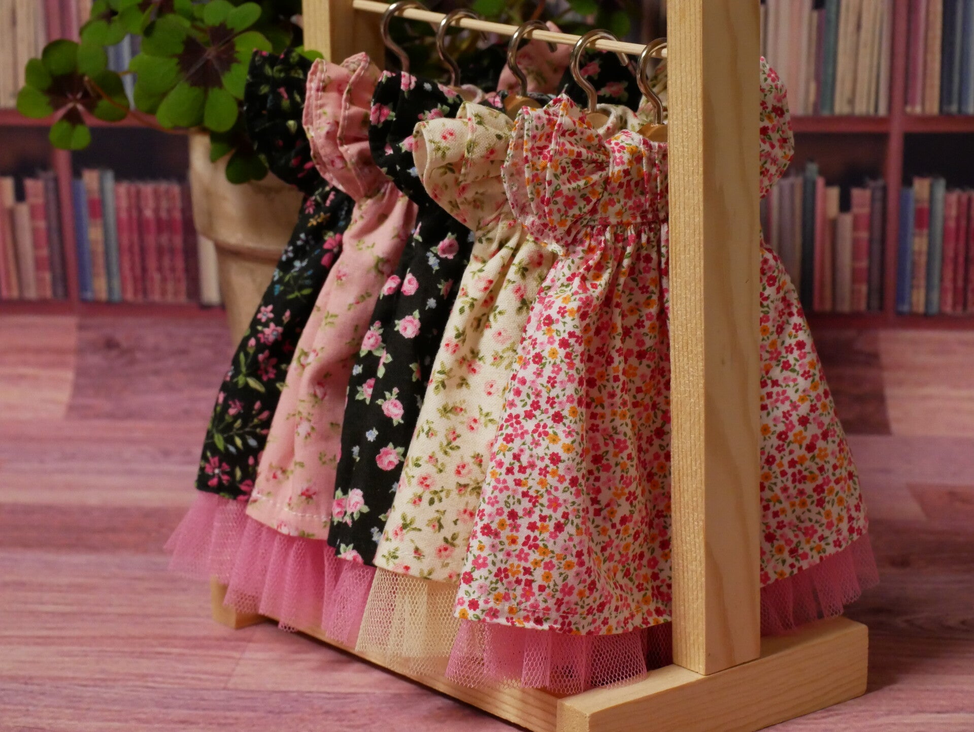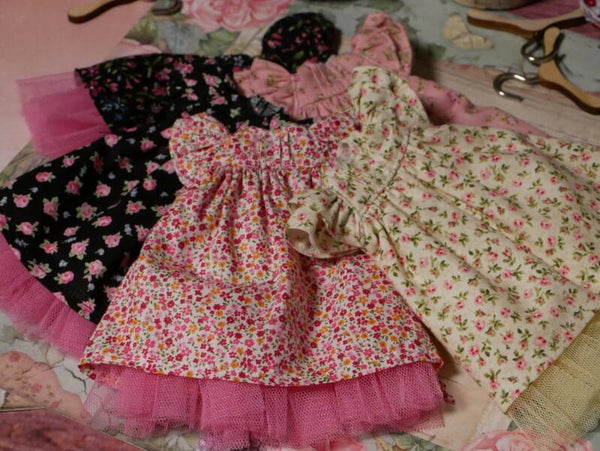 Floral print dress with tulle petticoat for Blythe or Emily dolls/ Pink tiny flowers