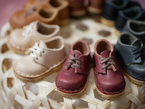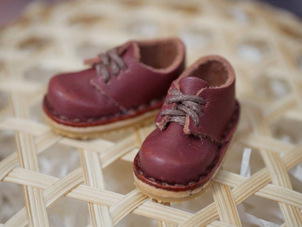 Short leather shoes for Monst & Blythe dolls./ Cinnamon red