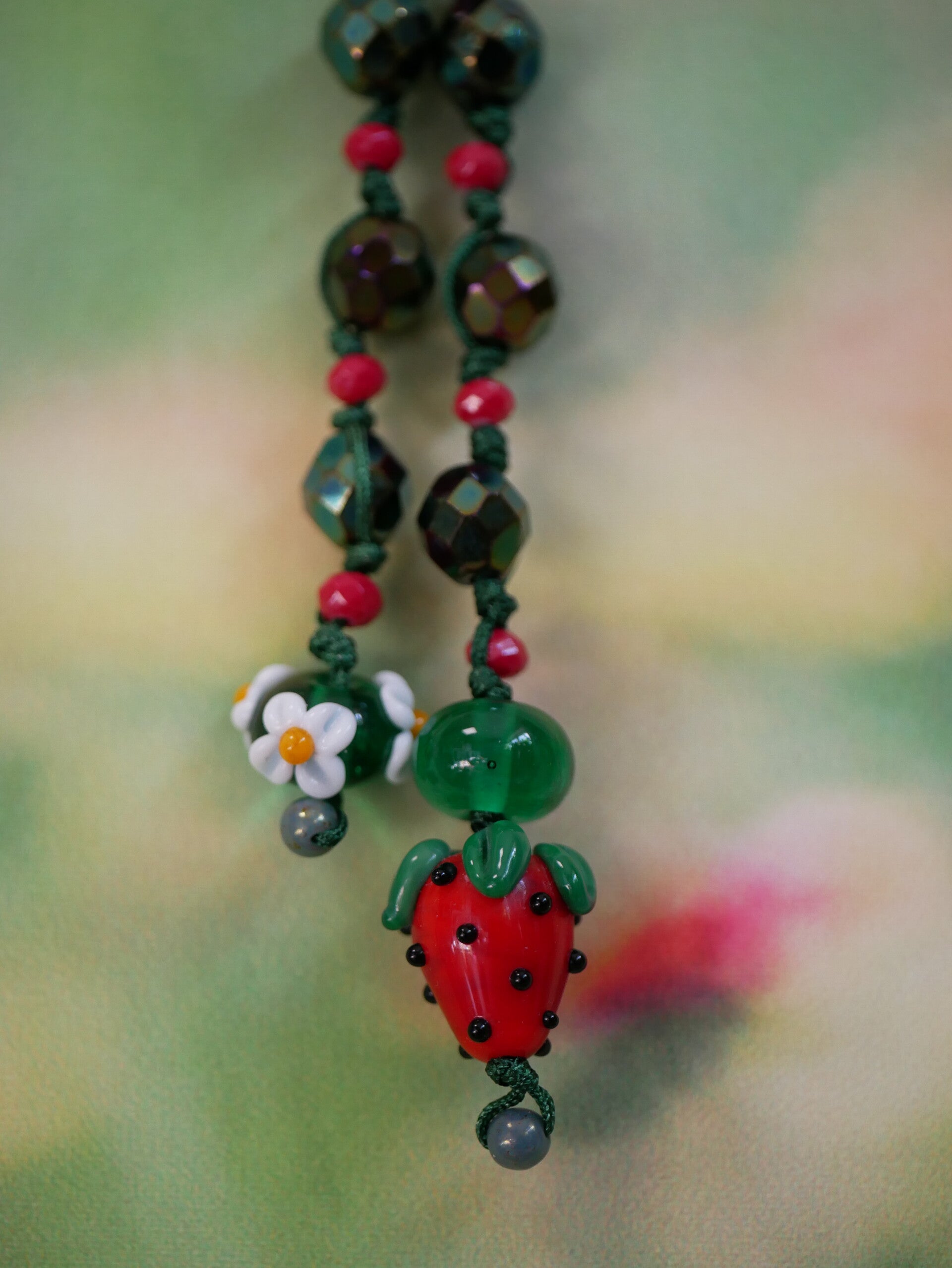 Blythe Beads Pull Rings/ Handmade strawberry glass beads 01
