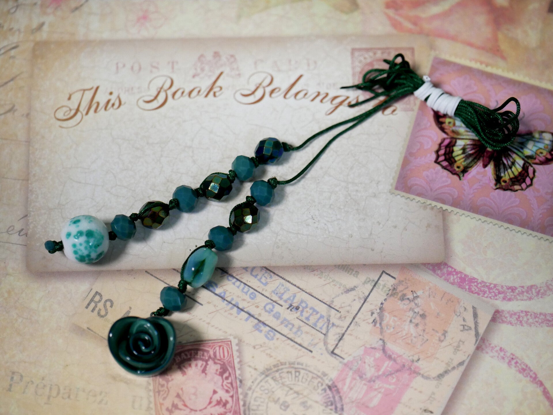 Blythe Beads Pull Rings/ Floral glass beads/ green