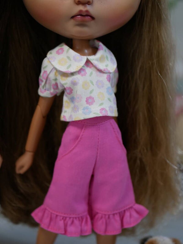 This listing only includes : 3/4 length pants with ruffle for Blythe doll.