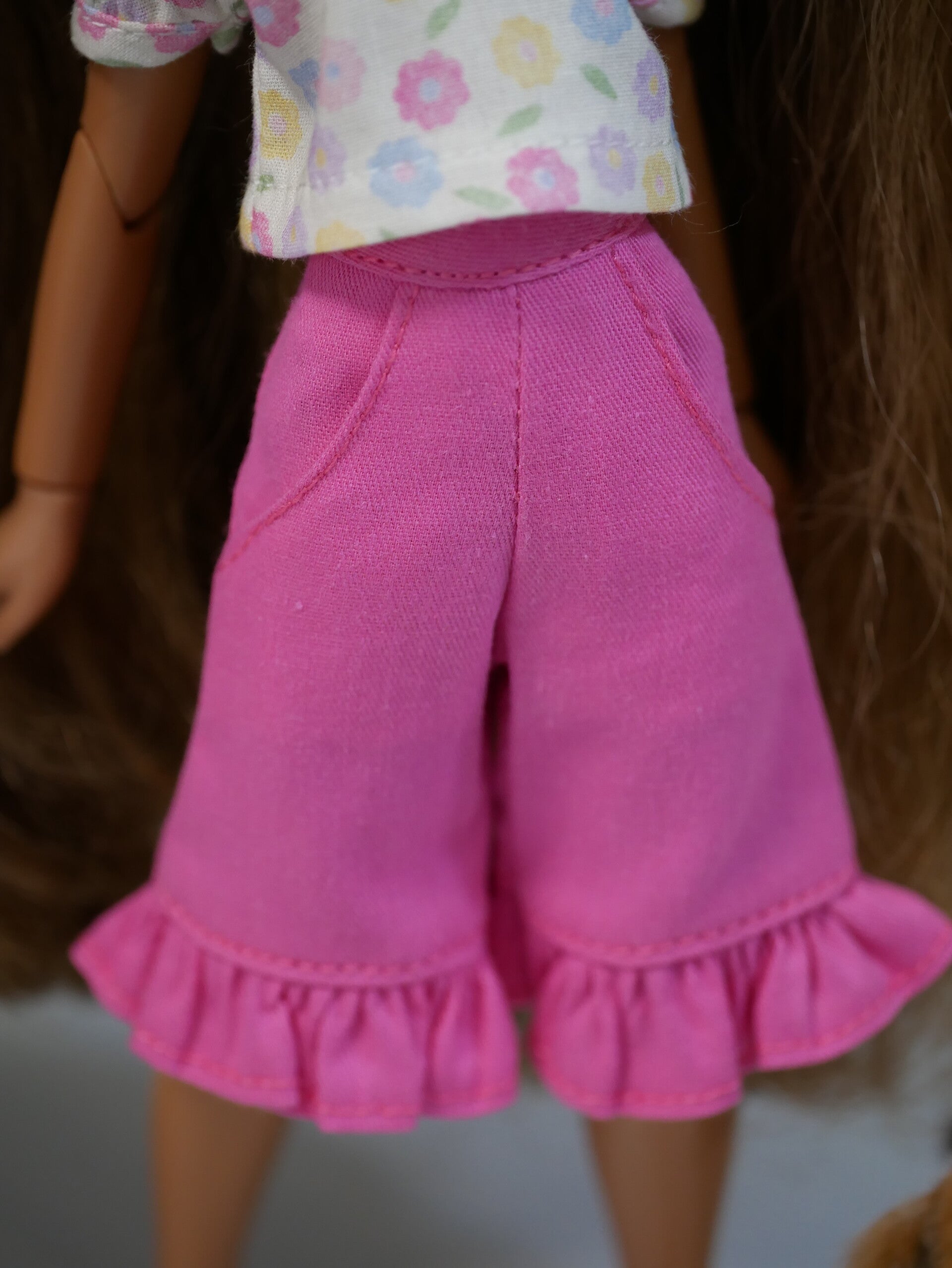 3/4 length pants with ruffle for Blythe doll. Hot pink
