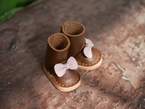 Leather boots with bow for Blythe Joint Body./ Brown-pink