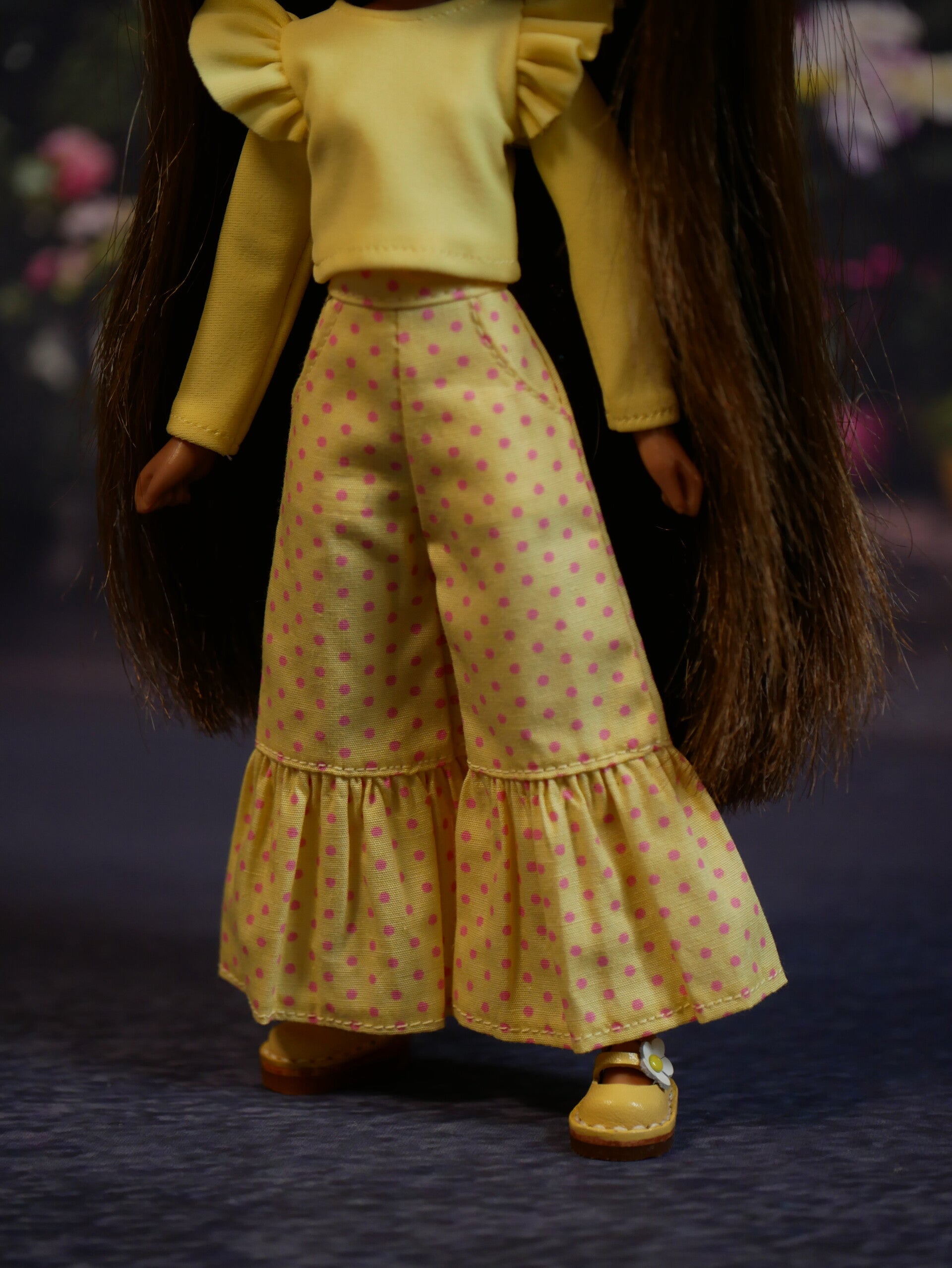 Pants with ruffle for Blythe doll. / Yellow/ pink dots
