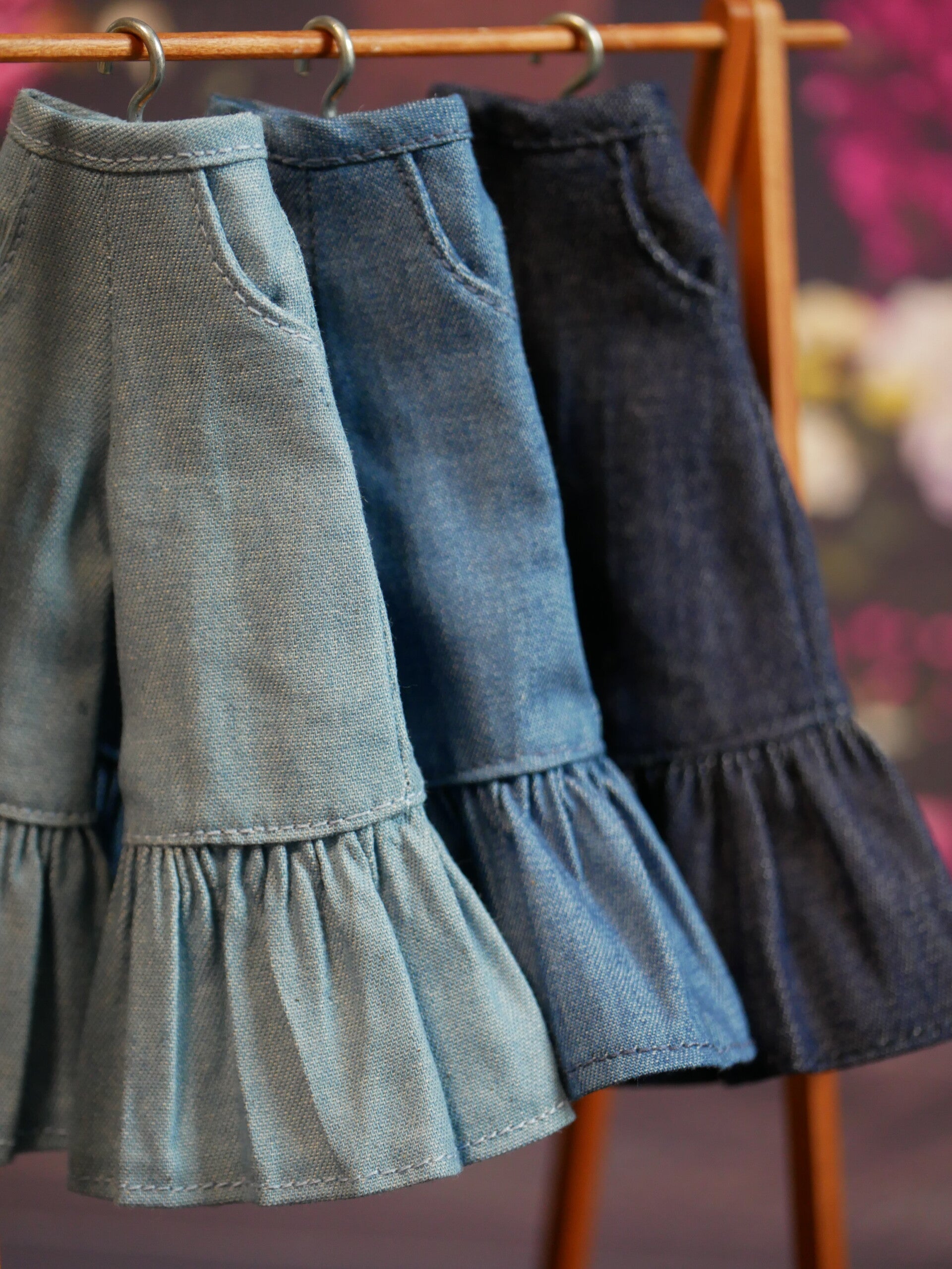 Pants with ruffle for Blythe doll. / Denim M blue 02