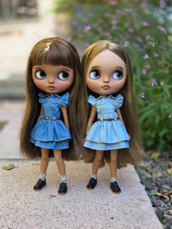 Beautifully fitting denim dress for Blythe dolls.Dolls and other items not included.Don't hesitate to ask any questions :)