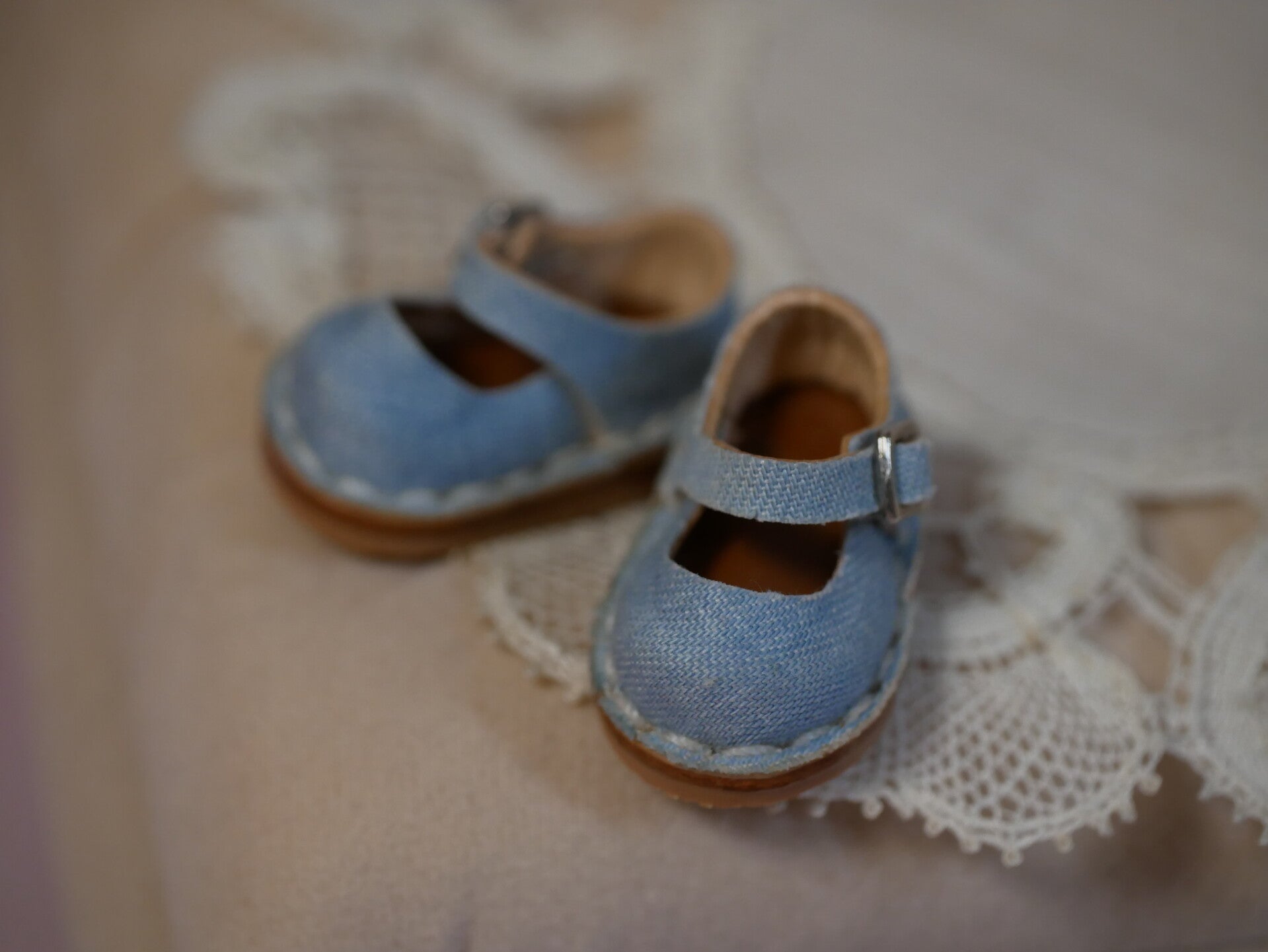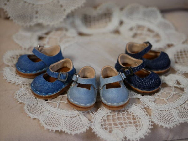 Mary Jane leather shoes for Blythe./ Lt bleu denim