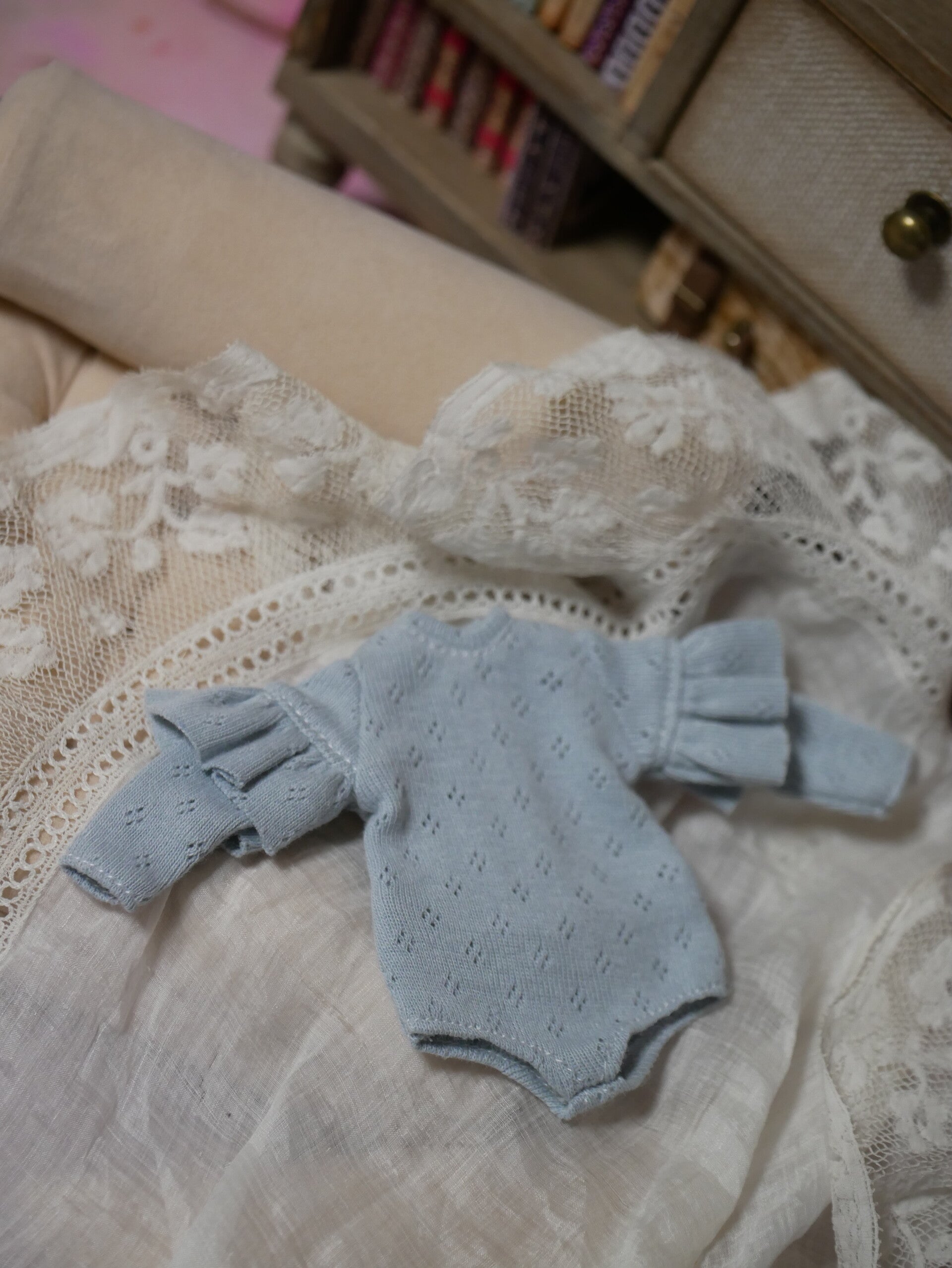 Long sleeve bode with ruffles for Blythe dolls./ Blue