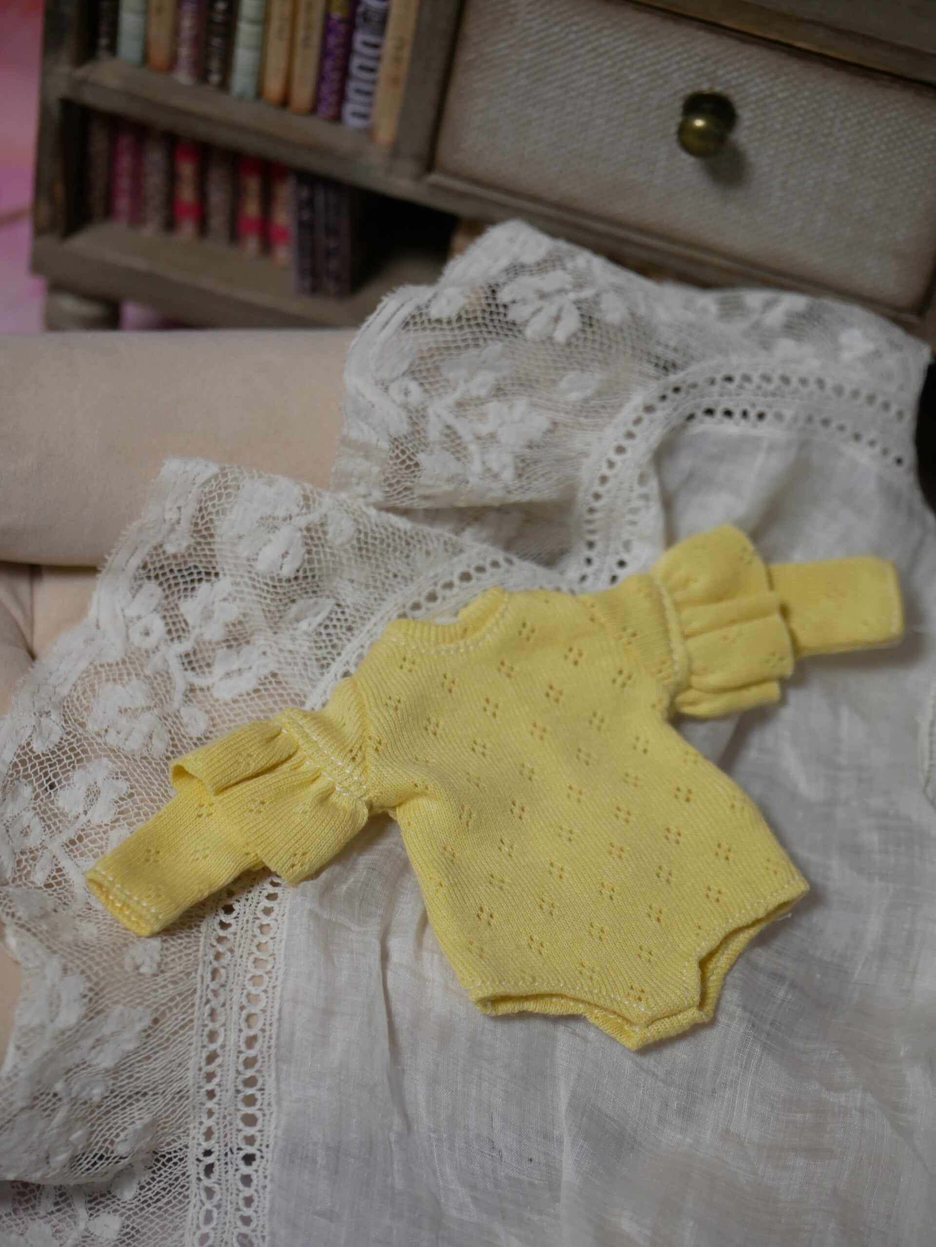 Long sleeve bode with ruffles for Blythe dolls./ yellow