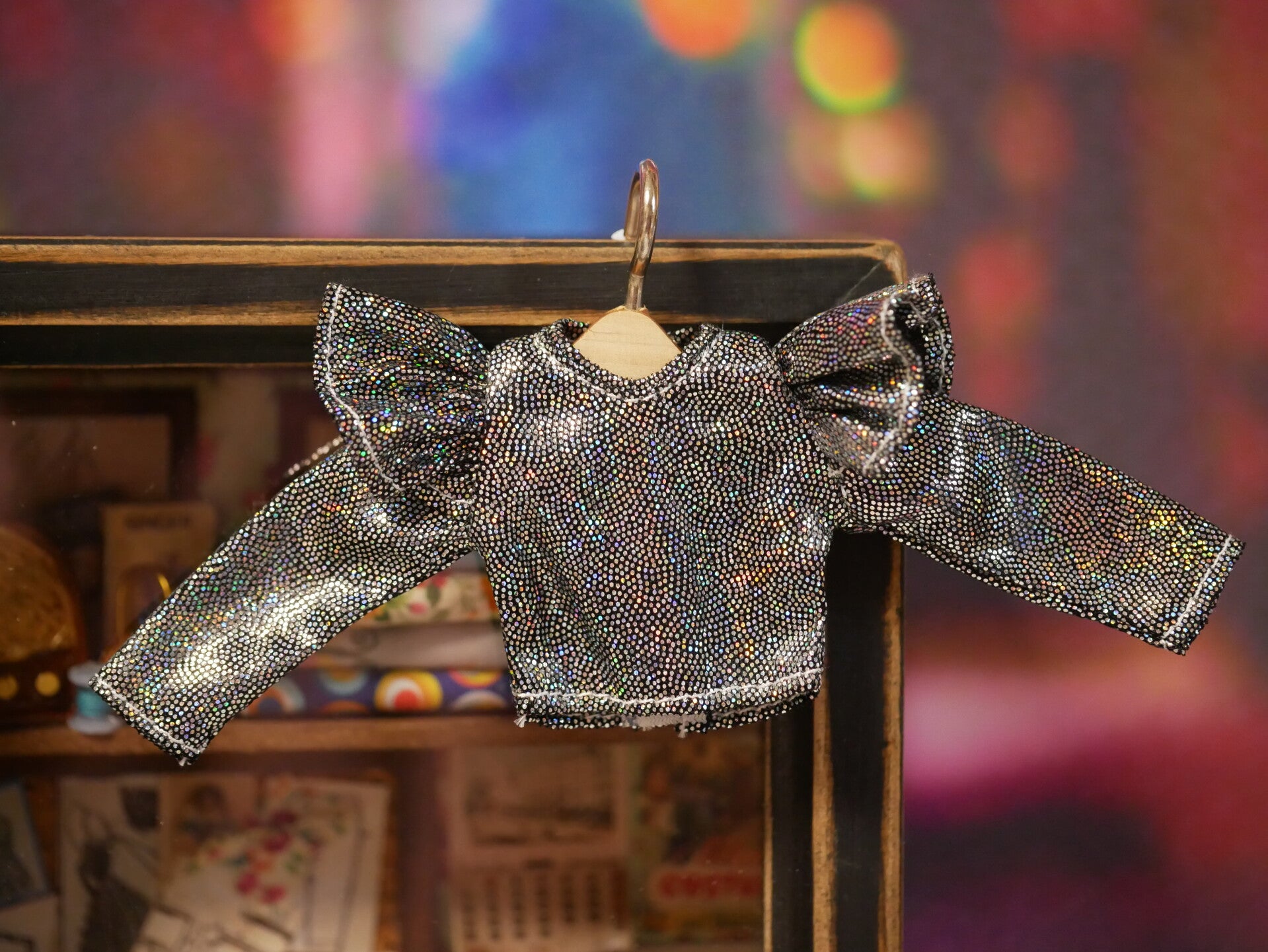 Blythe Puff-Sleeve Glitter Top./ Midnight Onyx
